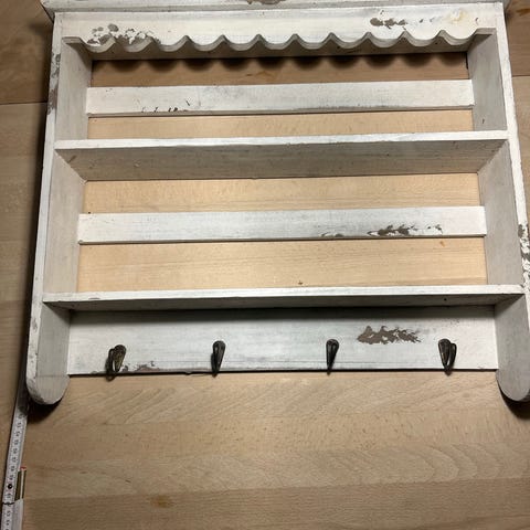 Sød og robust lille træreol med 6 rum og 3 skuffer. Mål på skuffer D. 15, H. 17, B. 16,5.
