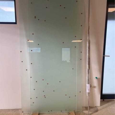 Sælger 1 stk fritstående glas til badeværelset 8mm samt tilpassende metal sølv profiler