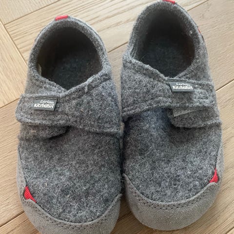 Grå uldfutter fra Living Kitzbühel med fast sål. Brugt sparsomt. Str 26. Uld også i sålen