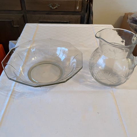 Smuk og enkel glaskande i mundblæst glas med bølget kant og fod.