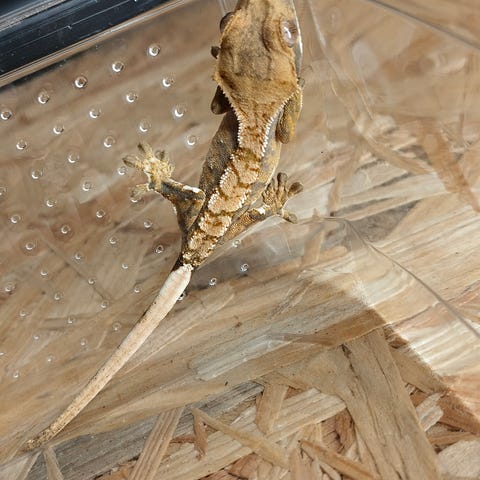 Sund og velfungerende kronegekko, som spiser fint, har normal afføring og netop har fået skiftet hamp. Klar til at flytte til et nyt og godt hjem.