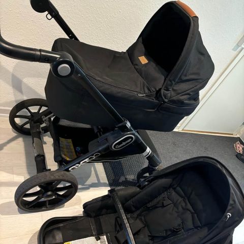 Vi sælger vores Emmaljunga nxt90 kombivogn fra 2019 med barnevogskasse samt vendbar klapvognsdel der kan ligges helt ned. Vognen er i god stand, men der er synlige brugsspor, som det kan ses på billederne. Der medfølger madres, forlæder, regnslag og kopholder.
