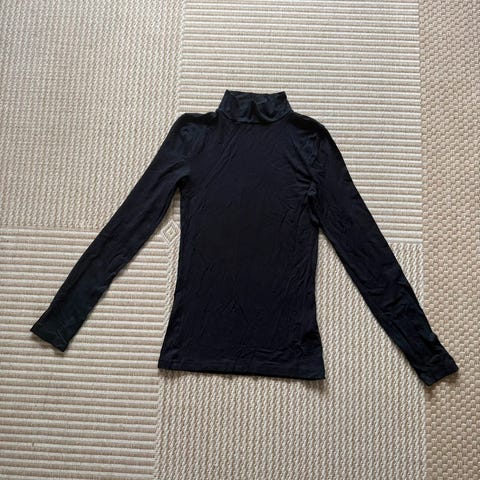 Gina Tricot sort bluse med hvide striber på ærmerne.Str XS