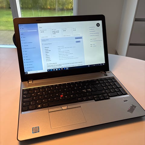 Lenovo ThinkPad laptop med sort kabinet. Udstyret med et indbygget DVD-drev og tastatur med trackpoint. Operativsystemet Ubuntu er installeret, egnet til almindelige eller simple computeropgaver og medieafspilning.
