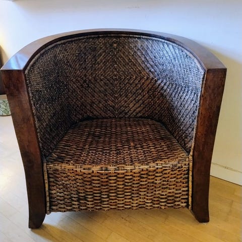 Flot og charmerende stol i lyngfarvet flet. Ingen synlige brugsspor.