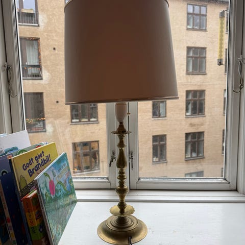 Antik bordlampe i træ. Virker fint. 30 cm høj med fatning