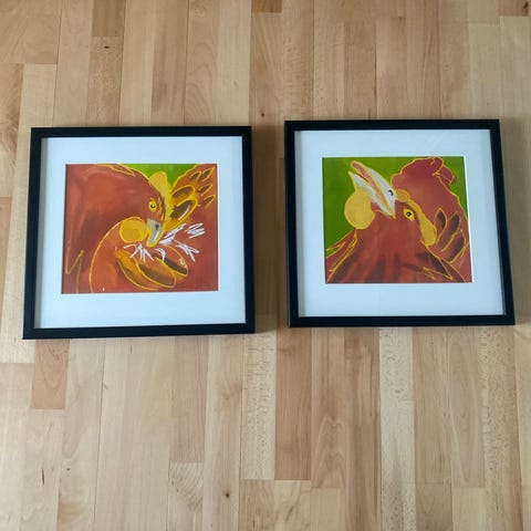 Smuk stor akvarel i smuk ramme