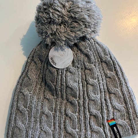 Melton råhvid Uldhue med klunker str 3-6 mdr.