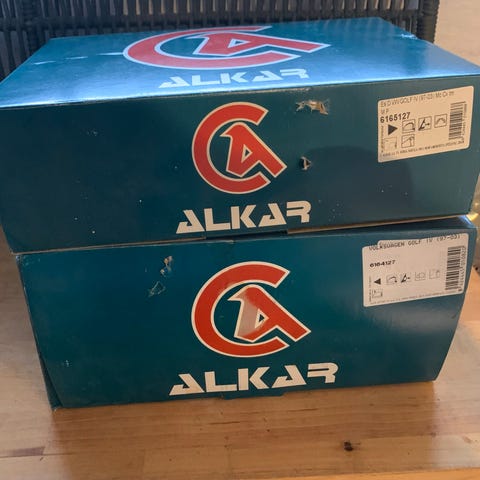 2x højre el sidespejle til VW Golf 4 et i guld og et i rød.