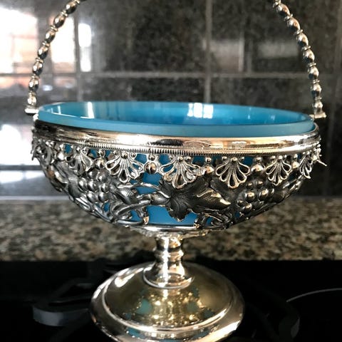 Flot Opsats i fattemandssølv/glas H ca 12,5 cm Ø 13 cm