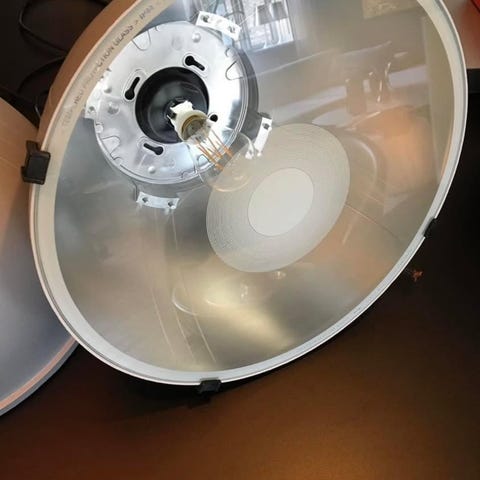 Den forrige ejer har ekseleret i at opsnuse, opkøbe og renovere disse vidunderlige store industrilamper. Under renoveringen er den gamle transformer blevet udskiftet, der er nye ledninger og stik (begge med jord). LED adapter og ny ophængskrog med indvendig låsebolt. Der er sat en plade i bunden, for det helt rigtige design til stuen. De er pudset op og fabelagtige.