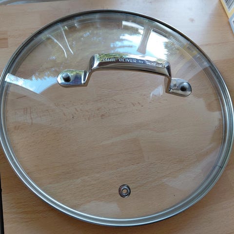 Glaslåg med damphul fra Jamie Oliver i serien Tefal. Diameter udvendigt som passer ned i gryden 26 cm