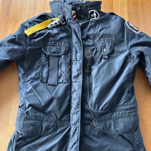 Super fin pajar jakke. Trænger til en vask og har lidt slid på læderet i kanterne og på knapperne ( ses oå billederne). Derfor sælges den også billigt.