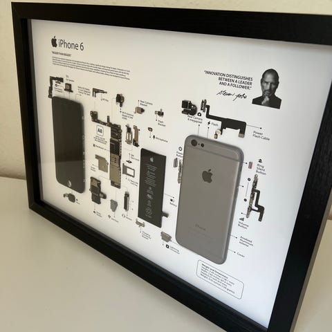 Kunstværk, skabt ved fuldstændig adskillelse af en iPhone 4, hvor hver komponent præsenteres og mærkes på en æstetisk og lærerig måde. Premium print i A3-format, monteret i en box-ramme med akrylglas. Perfekt til teknologientusiaster, samlere eller som moderne dekoration – hængt op på din væg vil det tiltrække alles opmærksomhed!