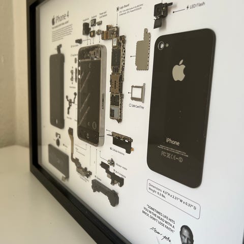 Kunstværk, skabt ved fuldstændig adskillelse af en iPhone 6, hvor hver komponent præsenteres og mærkes på en æstetisk og lærerig måde. Premium print i A3-format, monteret i en box-ramme med akrylglas. Perfekt til teknologientusiaster, samlere eller som moderne dekoration – hængt op på din væg vil det tiltrække alles opmærksomhed!