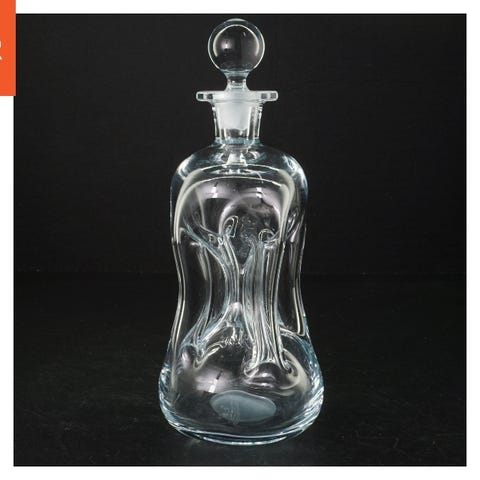 Dekorativ klukflaske / glaskaraffel med tinudsmykning (23x11 cm)