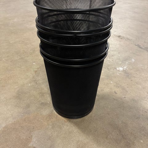 Papirkurv, i metal, Grå. Måler 37 cm i højden og har en diameter på 30 cm.
