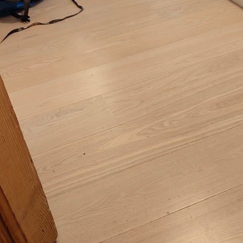 Gulvet er helt nyt og ubrugt, men i overskud fra vores egen nye lejlighed.