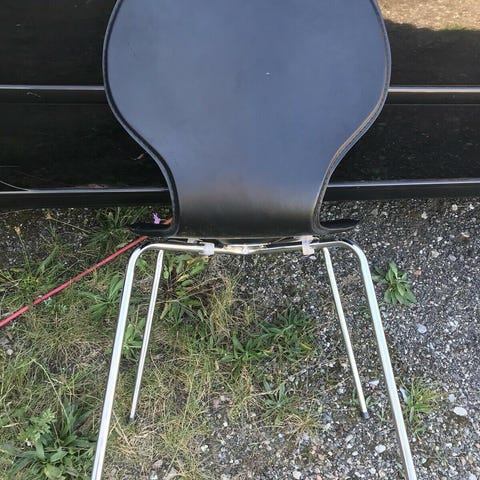 1 Stk. sort stol med sortlakeret stel og kraftig pvc sæde og ryglæn med riller sælges.