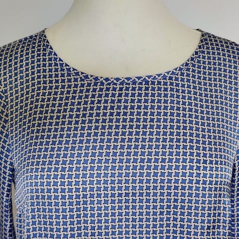 Her tilbydes en skøn langærmet bluse, fra United Colors of Benetton, str M, med et flot grafisk print.