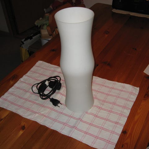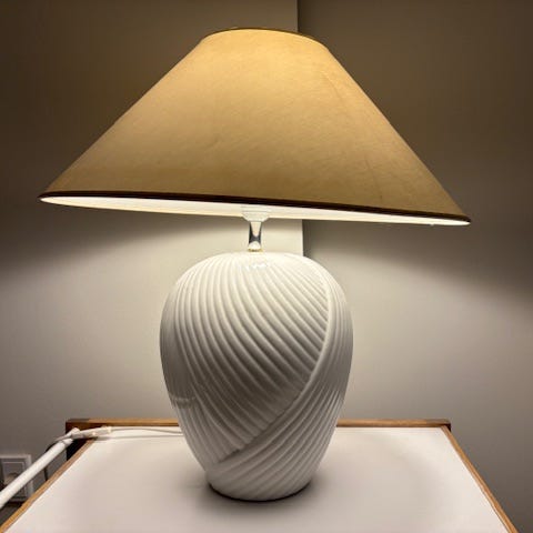 Flot hvid rund keramik lampe med høj rund grå skærm