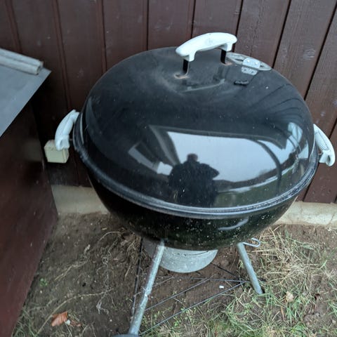 Kulgrill til bordet i sort, metalrist og låg med håndtag. Grillen har foldbare ben for nem transport og opbevaring.