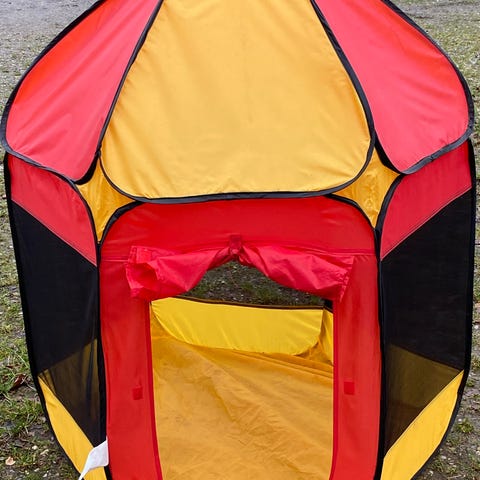 Hello kitty legetelt bortgives har set bedre dage men kan sagtens bruges endnu