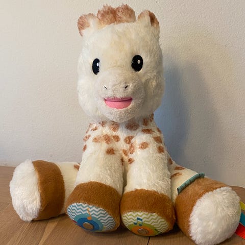 Fin og velholdt Sophie La Girafe plysbamse fra det hæderkronede franske firma Vulli, der siden 1961 har produceret den elskede bløde giraf.