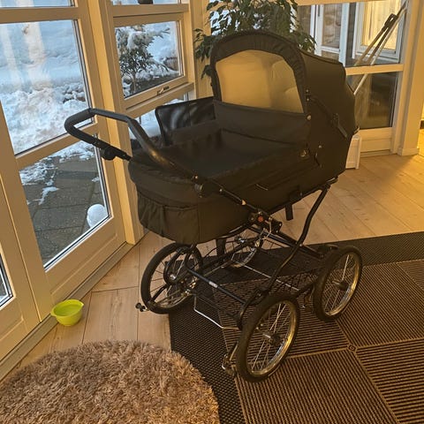 Lysegrå barnevogn i udemærket stand. Fra ikke-ryger familie. Den trænger til nye dæk. Der medfølger regnslag, myggenet, sele og barnevogns pude, samt 3 lagner.