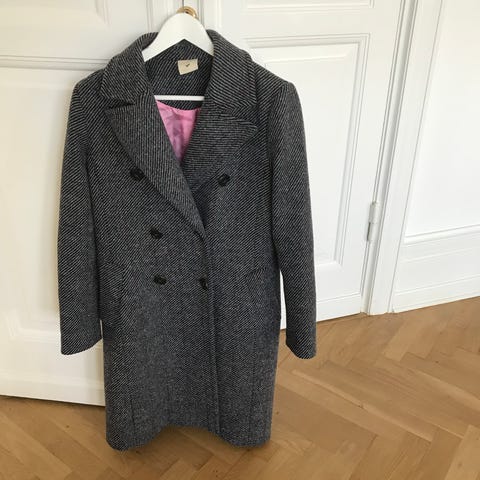 Virkelig smuk og unik frakke i 50% uld og 50% viscose, så den er både let at have på, men også dejlig varm 🐼 rummelig i størrelsen så man også kan have en strik indenunder.