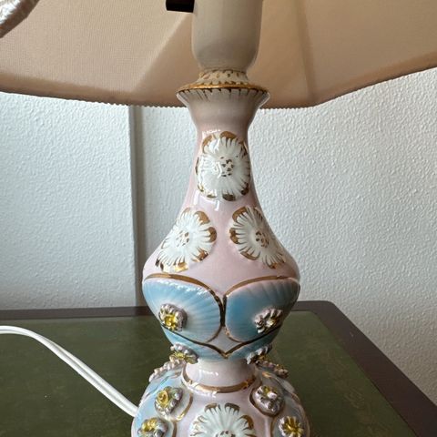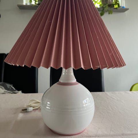 Bordlampe i hvid porcelæn med skærm