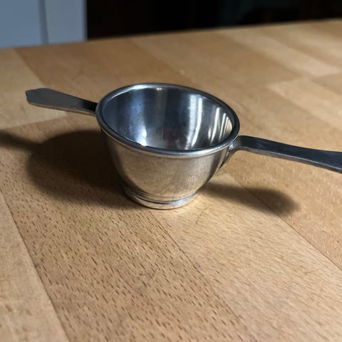 Klassisk sølvpletbæger med indgraveringen “Årets Hoppe 1985” og initialerne A.I.A.F.