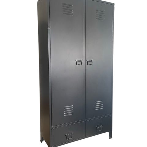Sort metal garderobeskab med riflet glaslåger - 4 stk haves.