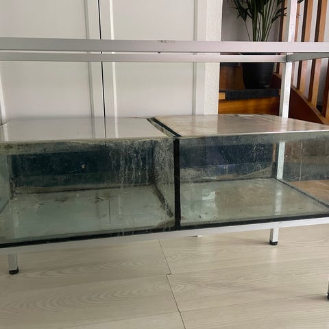Utæt Akvarie 106L flænge i bunden: mål 70 cm lang højde 41 cm dubde 37 cm