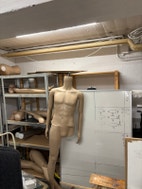 Sæt med mannequindele inklusive hoveder, arme og ben samt en metalreol med flere hylder. Metalreolen er velegnet til opbevaring af mannequindele eller andre varer. Mannequindele er i forskellige størrelser og positioner.