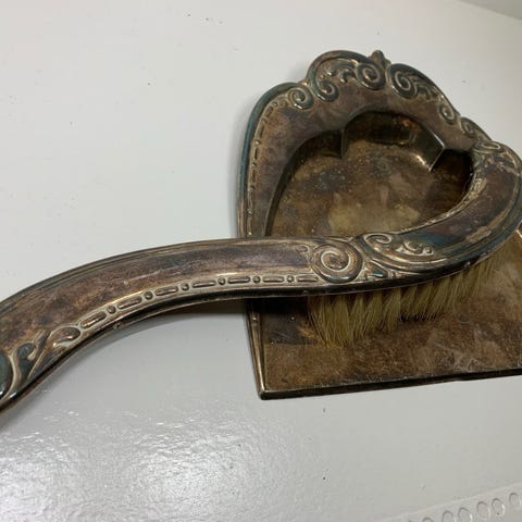 Grøn emalie – kan hænges – fejebakke og kost – meget charmerende - antik - gammel