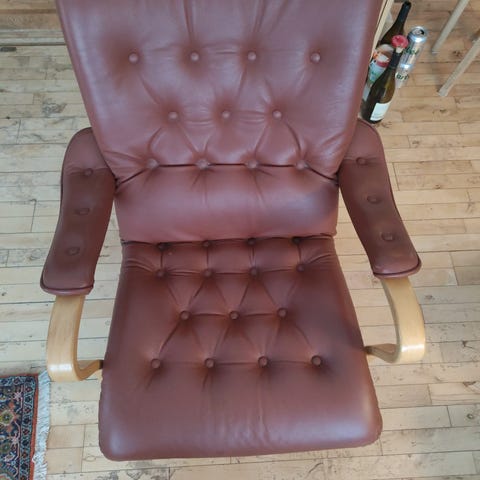 9 stk brugte lænestole / hvilestole designet af Jacob Berg og Tom Stepp for Schou Andersen model 7030. Stole har en del brugsspor og prisen er sat lav derefter. B:61cm. D:71cm. H:100cm. Stole er ikke nye og sælges derfor som brugte, derfor kan der forekomme ridser, slid og skrammer. Prisen samlet og kun samlet for de 9 stole er kun 6.000kr. vejledende nypris pr stk er ca 6.000kr