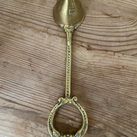 Fin, lille vintage lyseslukker i metal med klassisk konisk form og kugle på toppen.