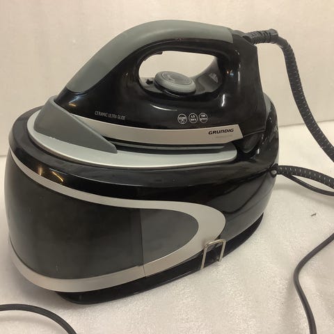 Næsten ny dampstation, kun brugt få gange. Kan bruges som almindeligt strygejern eller med damp. Også velegnet til presning af uld. Brugsanvisning medfølger.