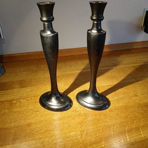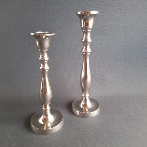 Lene Bjerre lysestage i metal designet til at holde et standard stearinlys. Lysestagen har en klassisk form og en metallisk finish, egnet til dekoration og brug i hjemmet.