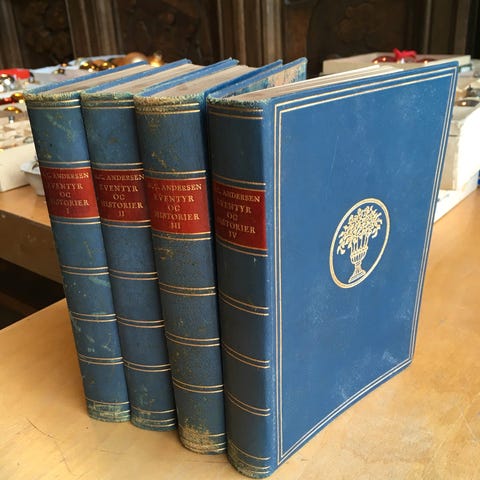 O.T., Hans Christian Andersen, genre: eventyr, Meget gammel, 1854, indbundet, halvlæder. Fra Bianco Lunds bogtrykkeri. Brunplettede sider, usigneret, hel.