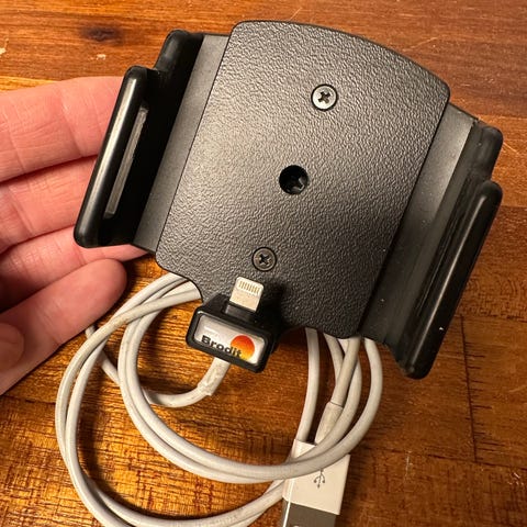 Brodit aktiv holder justerbar. Passer til alle iPhone modeller med Lightning kabel. Sælges da jeg har fået nyere iPhone med mikro usb kabel.