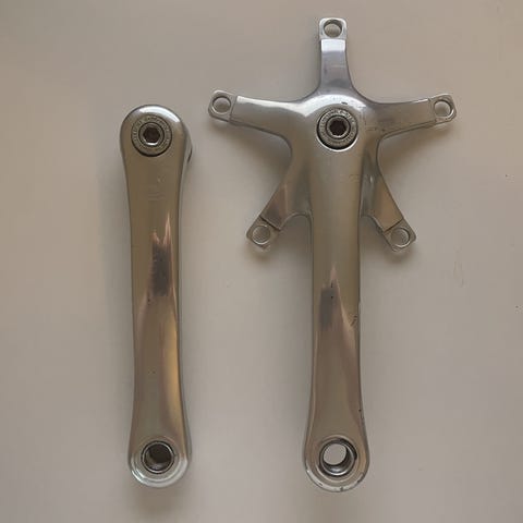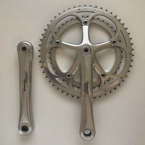 Klinger med mange kilometer tilbage , 50-34 gearing, 175 mm arm, Stronglight storklinge, Campagnolo lille klinge,