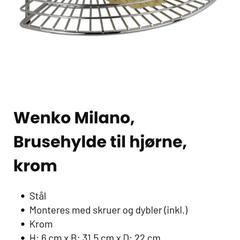 Wenko opbevaringskurv til bruser Milo rustfrit stål. Købt i juli 2025. Ny pris 399,95
