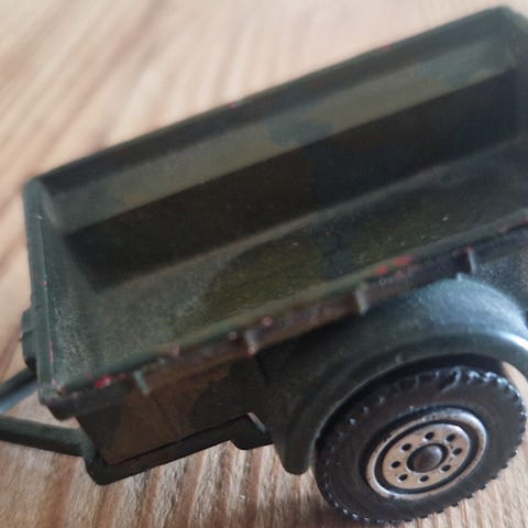 Atlas Editions Militær Jeep med trailer i skala 1:32, detaljeret design i metal og plastik. Modellen inkluderer en trailer,
