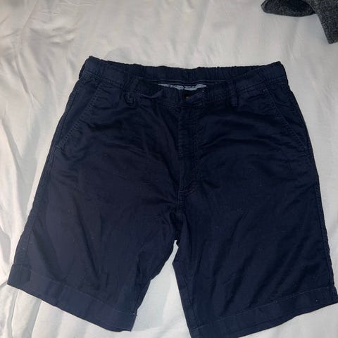 Jack & Jones M Shorts i størrelse M med blå mønstret design. Shortsene har lommer foran og bagpå samt knap- og lynlåslukning. Materialet er velegnet til casual brug.