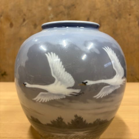 Royal Copenhagen porcelænsvase med Svanetræk. 1. Sortering.