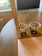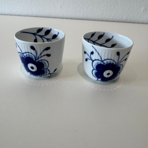 Blå Mega Riflet Fyrfadstager i 1. sortering og med modelnummer 150. De står uden ridser og skår. Målene ses på billederne.
