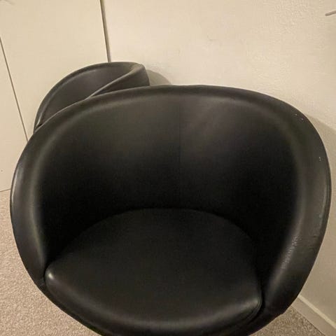 2 stk Stokke planet stole. Drejer 360 grader og har vippe funktion. Mørkebrune i anilin læder.