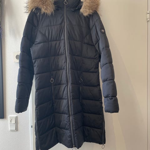 Etage Vinterjakke til kvinder i størrelse 44. Jakken er brun og har en hætte. Den er designet til at give varme og komfort i koldere vejrforhold. Jakken har lynlås foran og elastiske manchetter ved ærmerne. Der er lommer foran samt elastik i taljen for bedre pasform.